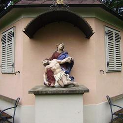 Am westlichsten Ende des Gartens befindet sich ein barocker achteckiger Pavillon aus dem 18. Jahrhundert. An der östlichen Wand dieses Bauwerkes steht auf einem Sockel unter einem gebogenen Dach eine farbige steinerne Pietagruppe, die aus der der Zeit um 1730 stammt und der zweifellos hohem künstlerischen Wert zukommt. Das schmucke Gartenhäuschen aus der Spätphase des Barocks zählt damit zu den älteren Gebäude der heutigen Stadtgemeinde. Die Pieta (italienisch: 'Frömmigkeit, Mitleid') ist in der bildenden Kunst die Darstellung Marias als Mater Dolorosa mit Leichnam des vom Kreuz abgenommenen Jesus Christus.